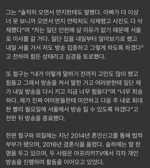 Bj ì² êµ¬ ì¸ì§íì ë¤í¼ í ì´í¼ì¤ê¹ì§ ì ë° ê³¼ëª°ì ì¢ ê·¸ë§ í´ë¬ë¼ ê°ìí 기ì í±ì¤íë´ì¤ from www.topstarnews.net 불륜녀와 사진찍힌 철구, 이혼 실시간중계 :: 최근에는 아내 외질혜(본명 전지혜)와 이혼 절차를 밟으러 간다는 영상이 조작이라는 것이 밝혀지면서 거센 비판을 받기도 했다. 유학자 계열과 유교적 가치관이 잔존하던 시대라 박인덕에 대한. 부모님 말씀 잘 따르면 나처럼 된다. 노태우(89) 전 대통령의 장녀이자 최태원(61) sk그룹 회장과 이혼 소송을 하고 있는 노소영(60) 아트센터 나비 관장이 소셜미디어에 이 같은 한탄 글을 올렸다. 이것은 실화다 몰래 당한 이혼 (150824). 두 사람의 이혼 합의금은 이전 최고 이혼 합의금 기록을 초라하게 보이게 할 정도로 큰 액수다. 철구는 이혼 발표를 했을 때 기사가 날 줄 알았다라며 다시 만나기로 했으니까 더 이상 기사가 나기전에 말하는게 좋을 것. 3년 후 신속한 이혼 보장.